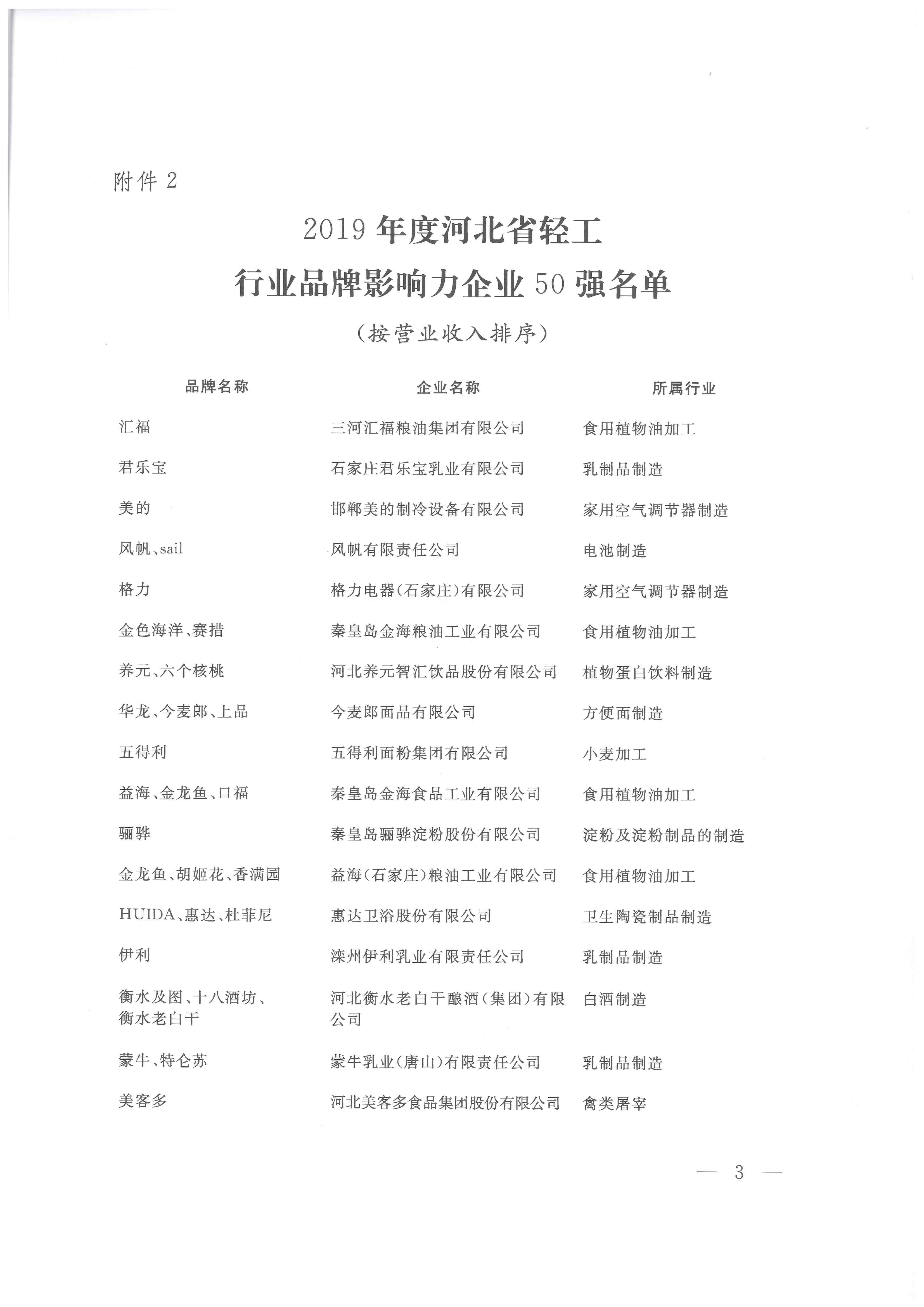 日前,河北省轻工行业协会公布了“2019年度河北省轻工业排头兵企业”名单和“2019年度河北省轻工业50强企业”名单。三河汇福粮油集团有限公司被河北省轻工业协会授予“2019年度河北省轻工业排头兵企业”和“2019年度河北省轻工业50强企业”。
