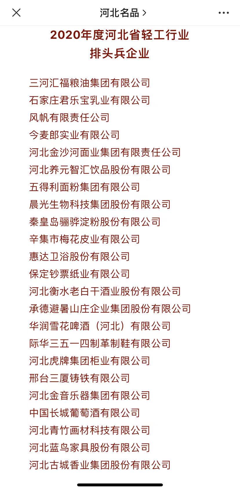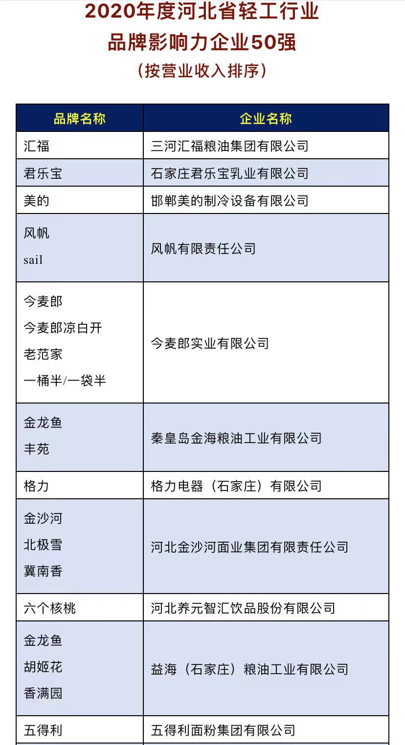 热烈祝贺汇福粮油集团持续位列河北省轻工行业排头兵、品牌影响力企业50强榜首